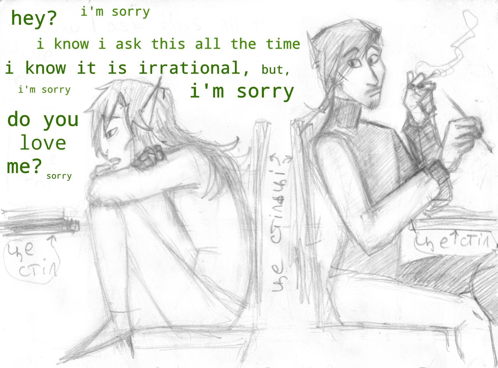 He: well, I said “I want” approximately one hundred times just now, [він їм в очі тут подивиться дуже прямо. обично ніт, бо знає шо їм це незвично і просто так бо не має звички вцілому, окрім коли дуже сиріозно шото каже], so yes, I’m sure, and I mean it very seriously, I want it.