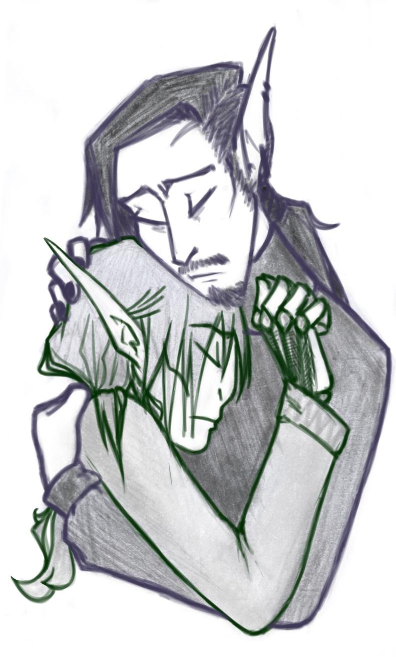 Illinary: [Іллінарі відкладають зайця, починають витирати рот рукавом, бо їм неприємно відчуття крові на обличчі, але ніяково що він побачив. намагається не дивитися на нього] ...я умиюся і повернуся. [каже більш якби втомлено ніж тривожно, бо вони розуміли, що колись він це все одно би побачив]